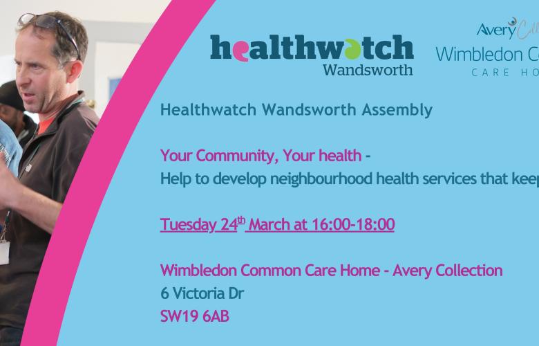 Join us at our upcoming Healthwatch Wandsworth Assembly on Tuesday 24th March 2026, 4-6pm at Wimbledon Common Care Home - Avery Collection